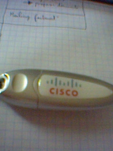 if (respond < 10) { cadeau = clef_usb; } May 25, 2007Humeur Pour une fois que je gagne à quelque chose… En répondant à l’enquête de CiscoMag, me voici l’heureux possesseur d’une toute nouvelle clef USB :