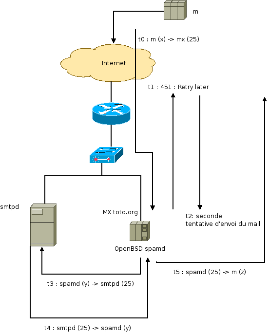 Il faut donc configurér le ‘MX’ (spamd) de manière différente (enfin …):