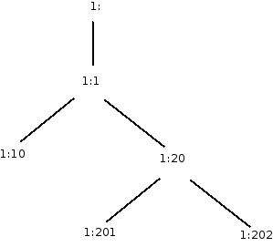 En effet, les classes 1:10 et 1:20 sont bien filles (siblings), néanmoins ses classes filles 1:201 et 1:202 ne partagent pas du traffic avec la classe 1:10.