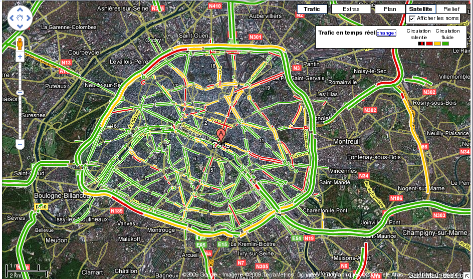 Je ne sais pas vraiment si cela fait longtemps, mais sur Google Maps, nous avons accès au trafic en temps réel :-) Ils sont quand même forts chez Google. Jusqu’où iront-ils ?! |