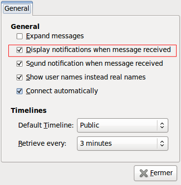 Voici un petit patch qui répare ce problème : diff -urpN -X ex twitux-0.69/src/twitux-parser.c twitux-0.69-dev/src/twitux-parser.c --- twitux-0.69/src/twitux-parser.c 2009-01-25 03:25:56.000000000 +0100 +++ twitux-0.69-dev/src/twitux-parser.c 2009-10-26 16:37:04.000000000 +0100 @@ -29,6 +29,7 @@ #define _XOPEN_SOURCE #include #include /bin /boot /cdrom /dev /etc /home /initrd /initrd.img /lib /lost+found /media /mnt /opt /proc /root /sbin /selinux /srv /sys /tmp /usr /var /vmlinuz for g_memmove - memmove */ +#include #include #include @@ -65,7 +66,8 @@ static gchar *parser_convert_time static gboolean display_notification (gpointer tweet); /bin /boot /cdrom /dev /etc /home /initrd /initrd.img /lib /lost+found /media /mnt /opt /proc /root /sbin /selinux /srv /sys /tmp /usr /var /vmlinuz id of the newest tweet showed */ -static gint last_id = 0; +// static gint last_id = 0; +static long long last_id = 0; static xmlDoc* parser_twitux_parse (const char *data, @@ -195,12 +197,14 @@ twitux_parser_timeline (const gchar *dat /bin /boot /cdrom /dev /etc /home /initrd /initrd.img /lib /lost+found /media /mnt /opt /proc /root /sbin /selinux /srv /sys /tmp /usr /var /vmlinuz Count new tweets */ gboolean show_notification = (last_id > 0); - gint lastTweet = 0; - /bin /boot /cdrom /dev /etc /home /initrd /initrd.img /lib /lost+found /media /mnt /opt /proc /root /sbin /selinux /srv /sys /tmp /usr /var /vmlinuz +// gint lastTweet = 0; + long long lastTweet = 0; + + /bin /boot /cdrom /dev /etc /home /initrd /initrd.img /lib /lost+found /media /mnt /opt /proc /root /sbin /selinux /srv /sys /tmp /usr /var /vmlinuz [...] L’intégralité ici : patch-twitux-notification.diff |