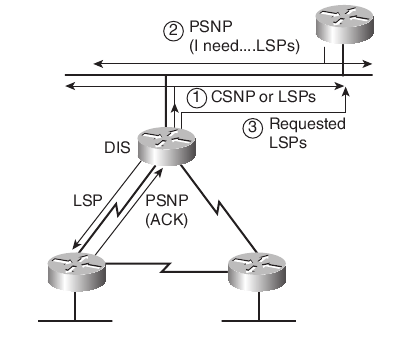 Afin de syncroniser la LSDB, les routeurs utilisent des PDU de types différents (énoncés ci-dessus) afin d’arriver à leur fin :